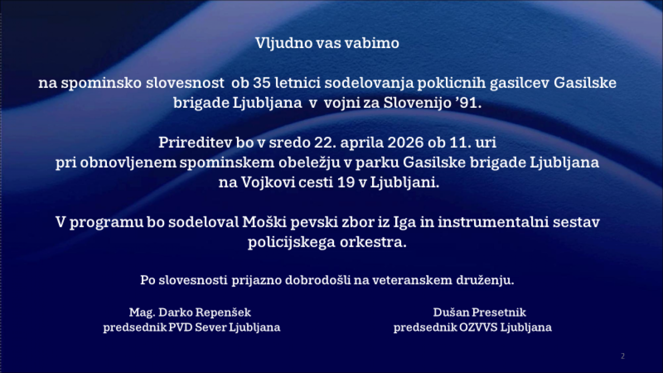 Prosim vas, da svojo udeležbo na slovesnosti potrdite do ponedeljka, 20. 4. 2026 na 051 622 544.