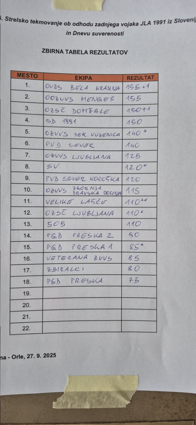 OrleV soboto 27.09.2025 smo veterani Ozvvs Ljubljana in PO Ljubljana pod pokroviteljstvom Metoda Šavsa predsednika PO Ljubljana izvedli 5. strelsko tekmo v počastitev odhoda zadnjega vojaka JLA iz Slovenije in dnevu Suverenosti.