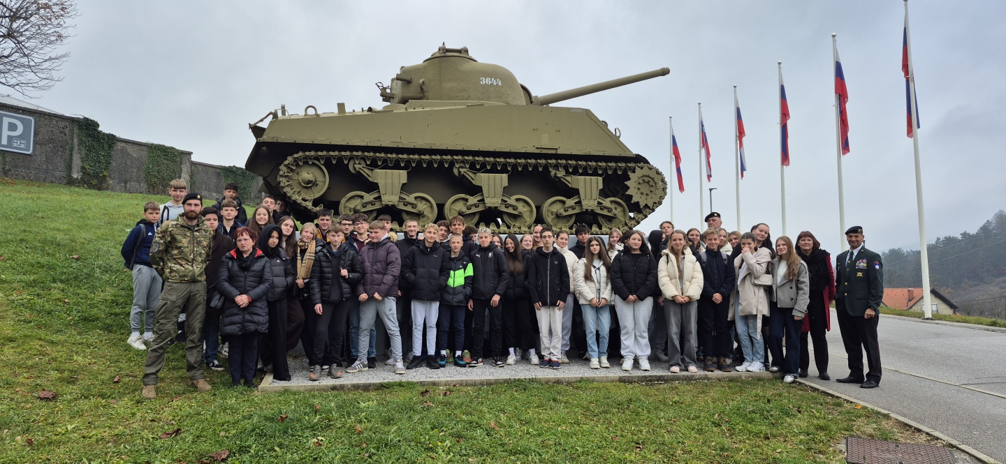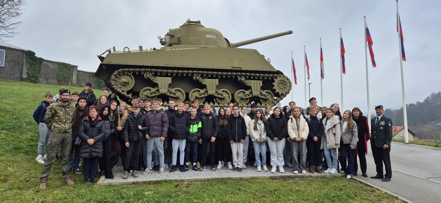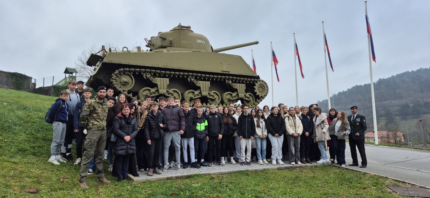 Hkrati se zahvaljujemo profesorju zgodovine Gašperju za kooperativnost in iniciativo ključno s profesorico slovenskega jezia in ravnateljico, ter vodiču iz Parka vojaške zgodovine za poglobljeno predstavitev vojaške opreme in pomembnih zgodovinskih dogodkov iz polpreteklezgodovine Slovenije.