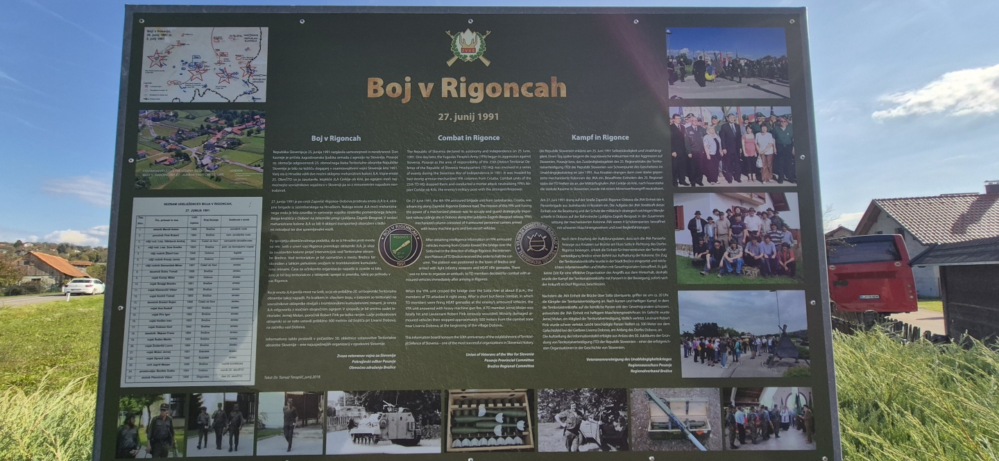 Iz Rigonc smo se premaknili v Prilipe, kjer smo pri nedaleč stran od spominskega obeležja so spoznali podrobnosti boja voda iz 110. jurišnega odreda 25. Območnega štaba teritorialne obrambe. Slednji so na tem mestu 2. julija 1991 zaustavili tankovski bataljon z 32. vozili, ki je prišel iz Jastrebarskega na Hrvaškem. Uničena sta bila dva tanka M-84 in dva oklepna transporterja. Enota ni opravila svoje naloge in se je poražena vrnila v vojašnico.