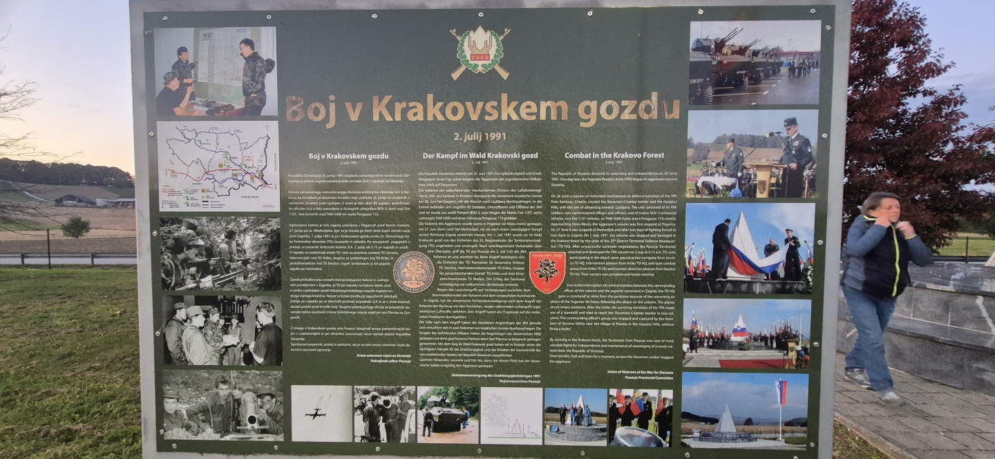 Pri Obelisku zmage nam je ralnožil vse o zgodovini Brežic, njeno strateško lego in dogodke med osamosvojitveno vojno.